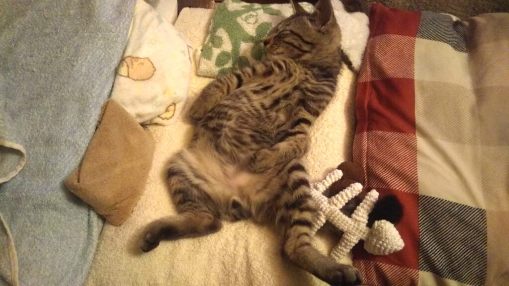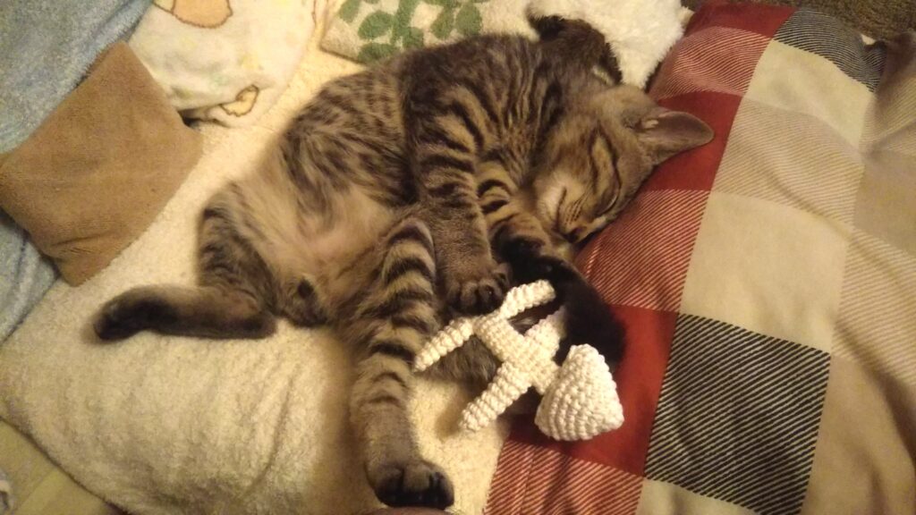 いっぱい遊んで、そのまま寝ちゃいました🐈️🐟️🌕️
