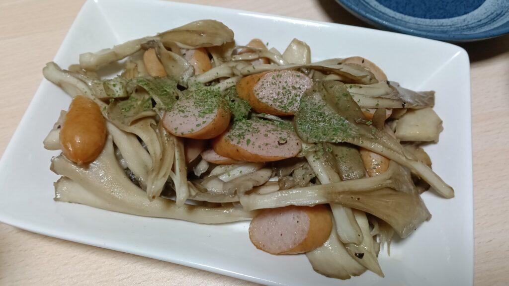 おくさんがつくってくれた舞茸の炒め物がおいしくて🍄🟫🎶、おくさんがDIYした子猫のごはん台がかわいかった日🐈️🍚💕