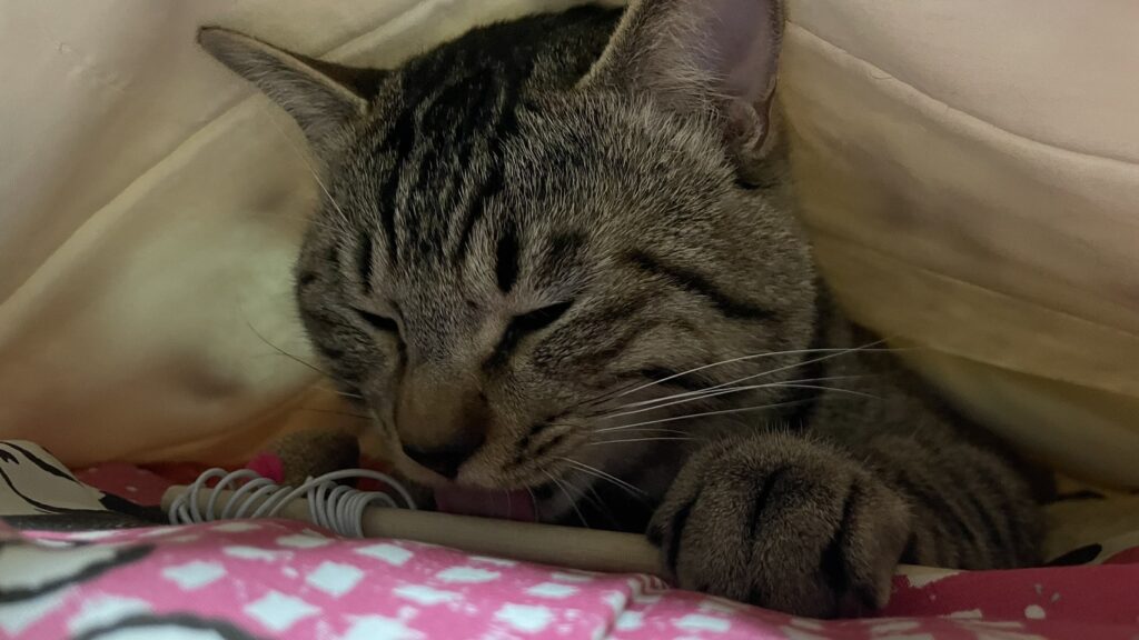 おもちゃをぺろぺろ ゆべしくん🐈⬛💕