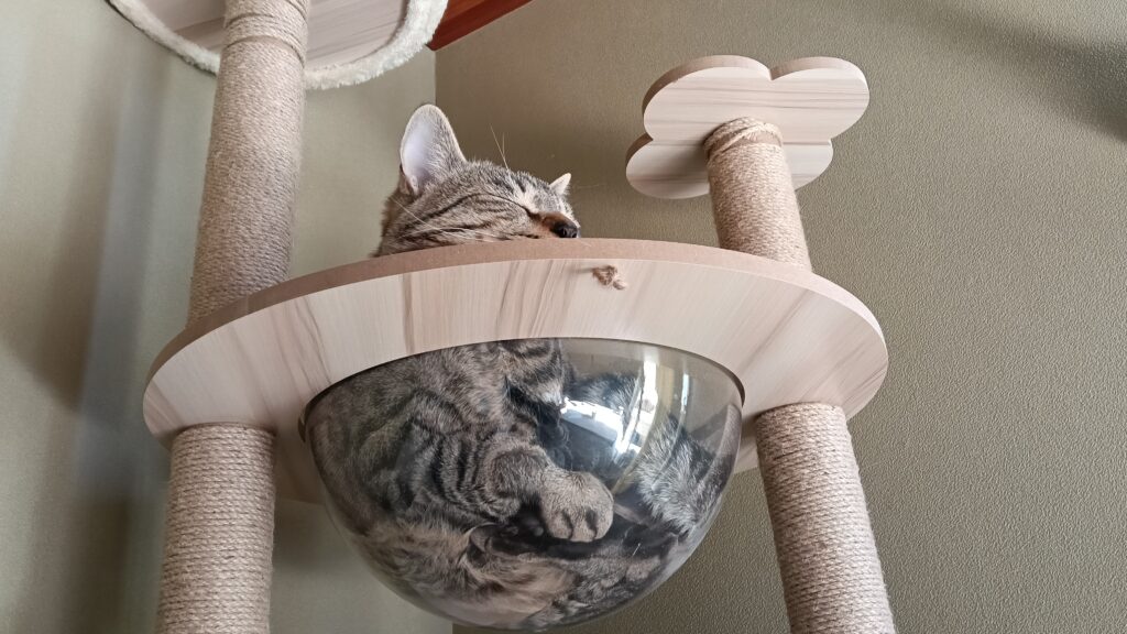 最近お気に入りのキャットタワーでお昼寝🐈⬛💤☀️