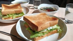 しかも今日はお皿じゃなくて木のまな板にパンを乗せてみたらすごくかわいくて、その発見もうれしかったですね🥪✨️