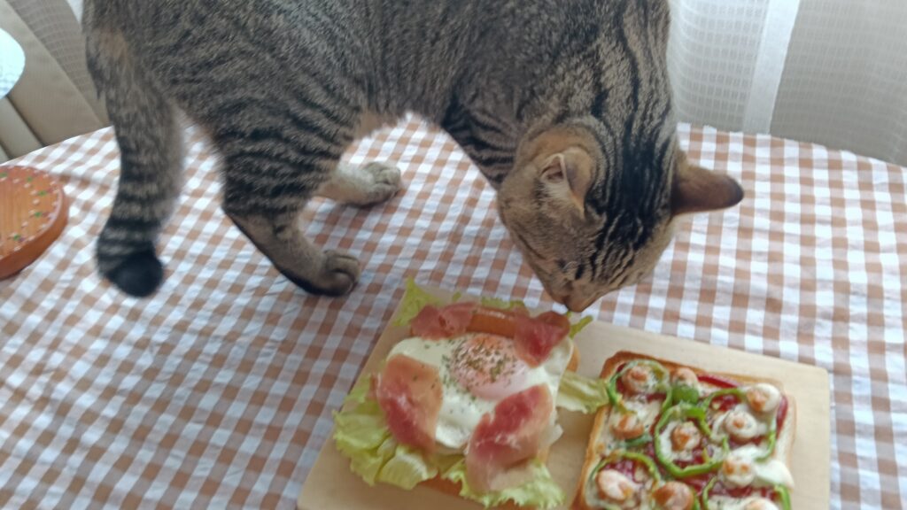 おくさんが生ハム目玉焼きパンをつくってくれました🥩