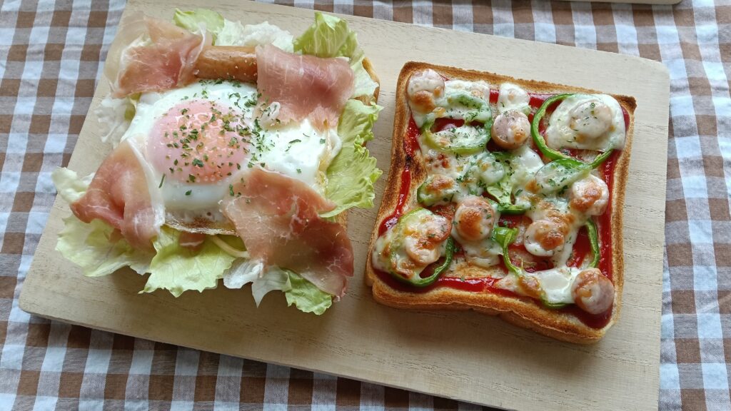 お昼におくさんとつくったセット🥪🍳🍕