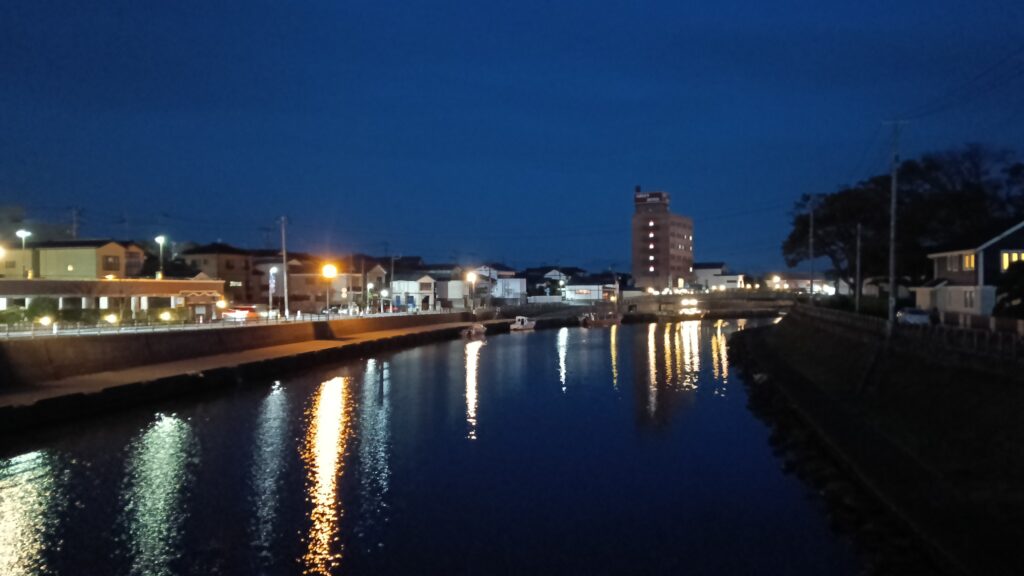 水面にうつる灯りがあまりにもきれいで、