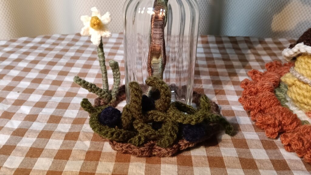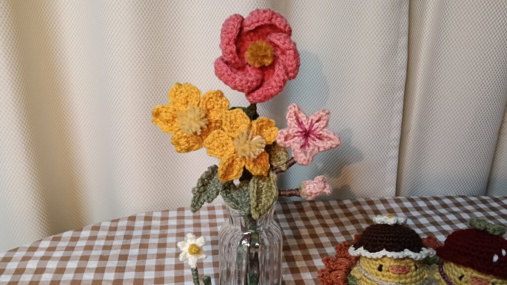 おくさんはその親戚の方から、小さい頃にお花や植物などの自然をたくさん教えてもらったそうで、その感謝の気持ちを伝えようと編んだそうです🌼🌿🧶