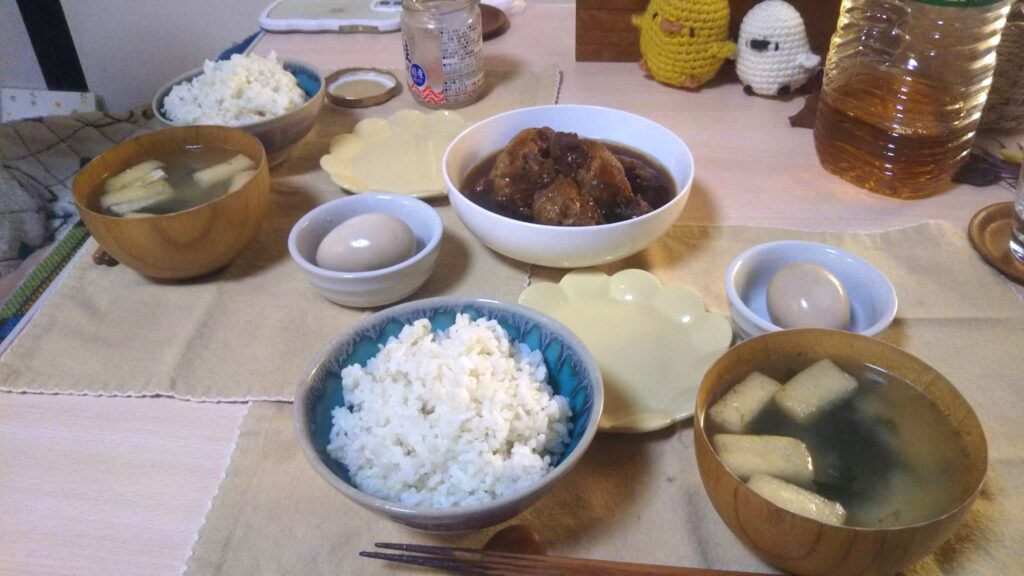 5分付きお米も、母からもらった煮たまごと手羽元も、全部おいしかった!