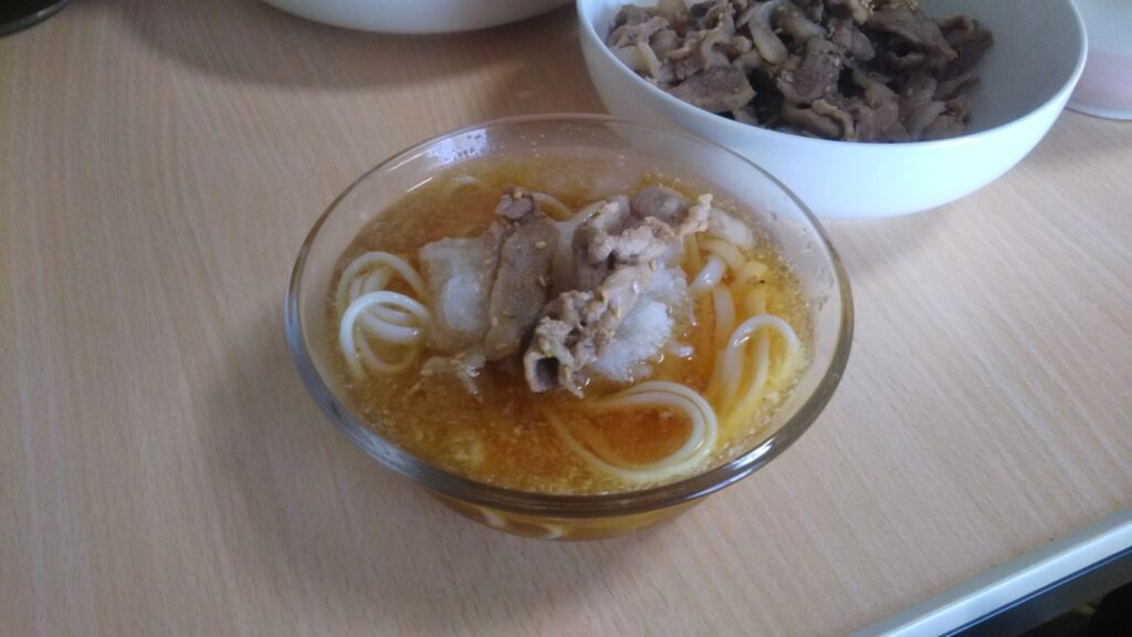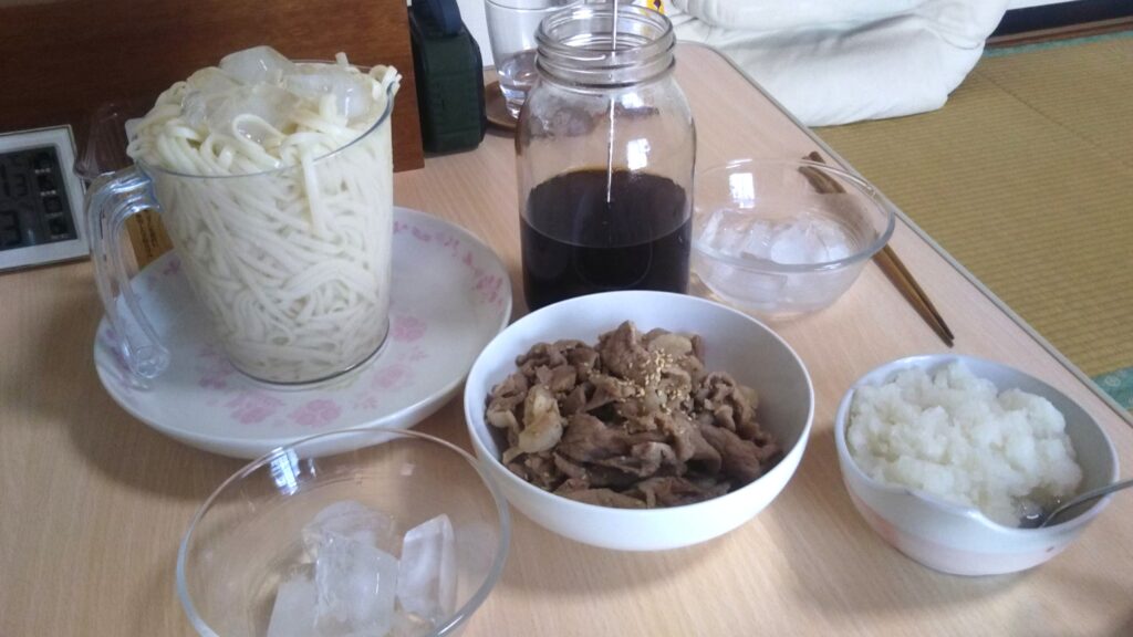 なのでお昼はおくさんと、冷え冷えの肉おろしうどんを作りました🎐✨