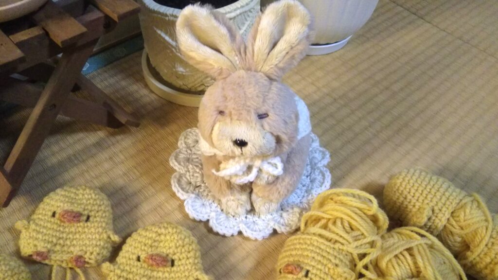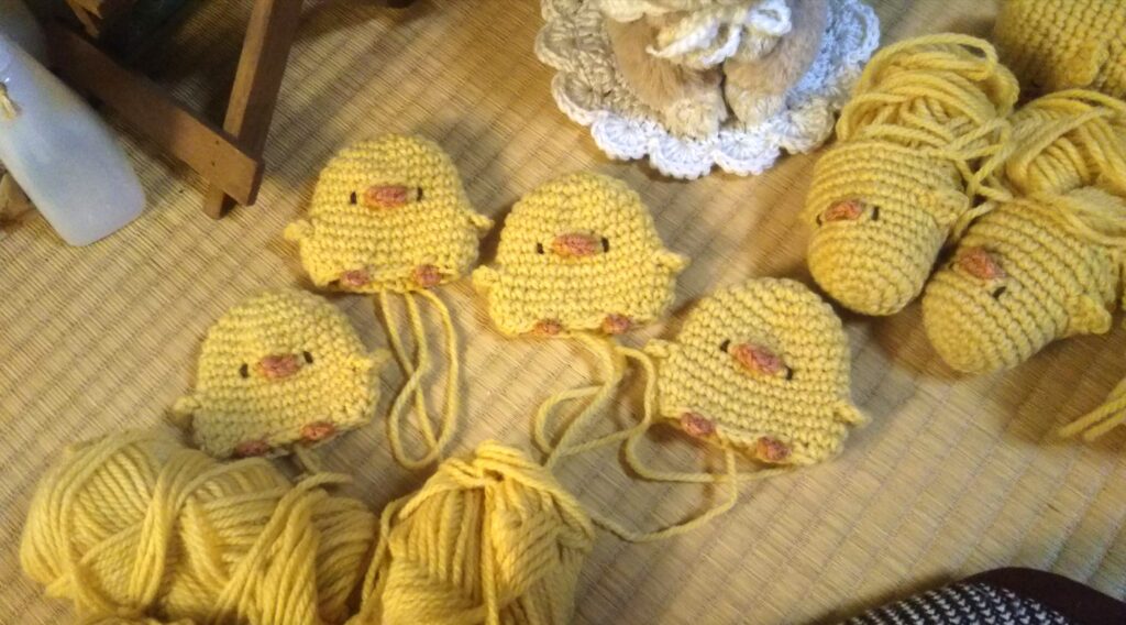 今日はおくさんが、これから始まる人生初の、4週間連続マルシェ出店に向けて、編みものラッシュしていました🐻🌷