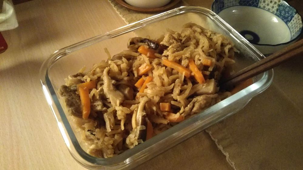 夜は、おくさんがお昼に卵粥といっしょに作ってくれた“切り干し大根”を頂きました💕