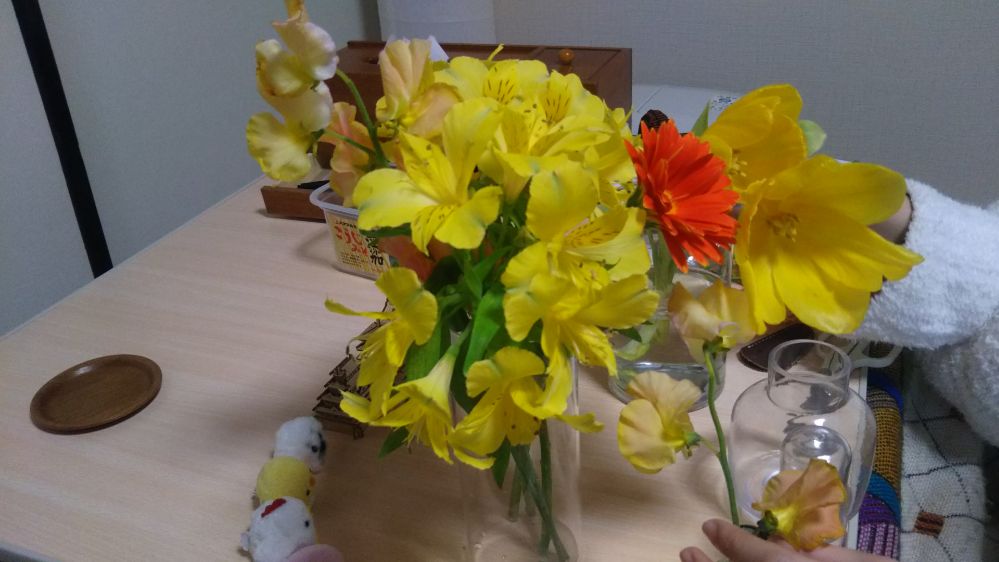 起きてすぐに、おくさんがお友だちからいただいたお花のお手入れをしてましたね🌷